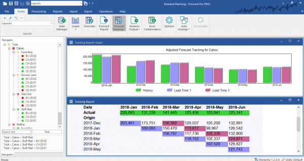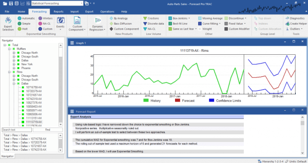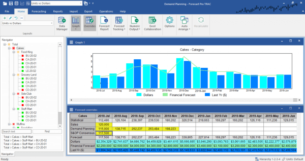 You can forecast at any level of granularity and easily view/report aggregate data and forecasts. Forecast Pro also supports hierarchy pivoting and the ability to work with forecasts in units, dollars, and other units of measure simultaneously, allowing different parts of your team and/or organization to view the forecasts how they want to see them.